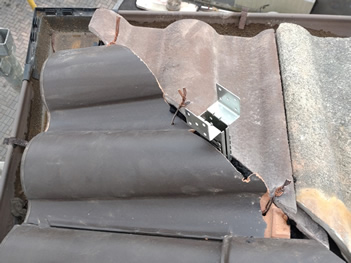 今回は施工しない絡みのある既存瓦には、粉塵等がかなり目詰まりしており 雨漏りを起こしかねないのでブラシにて綺麗に掃除をさせて頂きました。